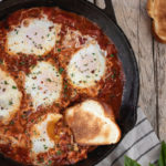 Bold, spicy tomato sauce topped with perfectly cooked eggs with runny yolks and served with garlic toast make this Eggs in Purgatory recipe a perfect brunch or weeknight dinner.