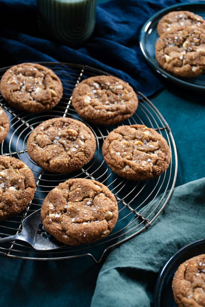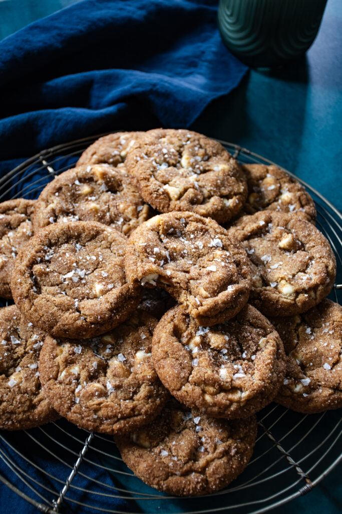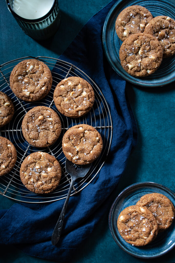 These cookies were such a labor of love, or some other powerful emotion mixed with determination. In my experience, most pumpkin cookies ride the line between cookie and cake a little too freely. I ventured to create a spice-packed pumpkin cookie worthy of the coziest Fall Day that gives all the PSL vibes in cookie form without being spongy or cakey. It took a year, but alas, here we are and I cannot stop eating these Pumpkin White Chocolate Chip Cookies.