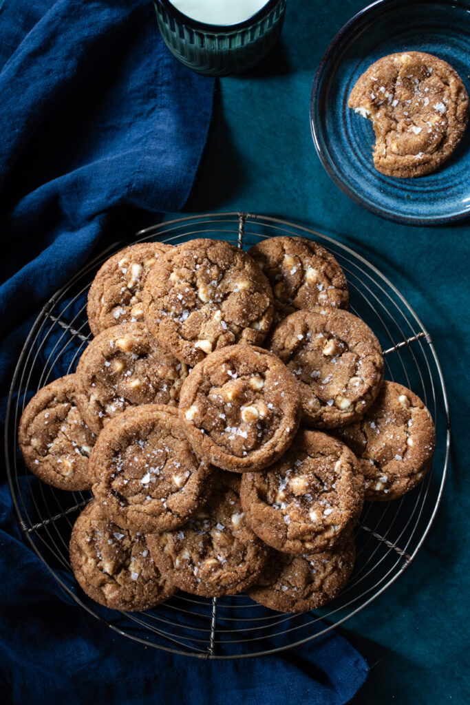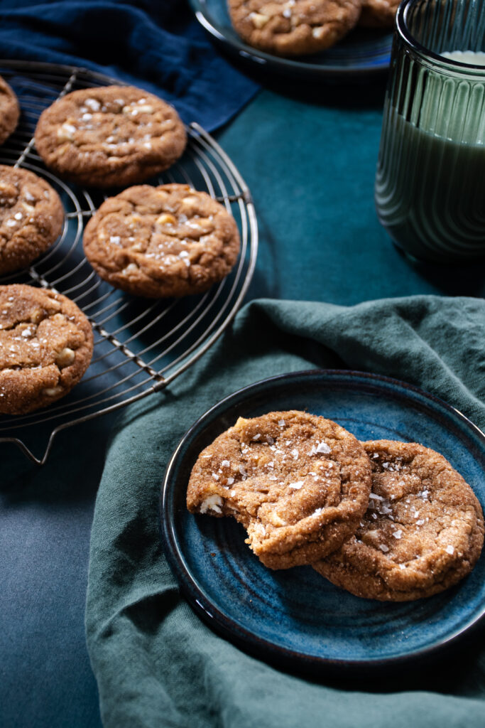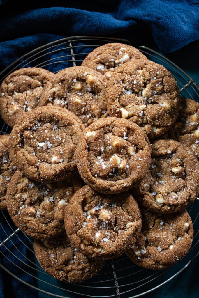 Second, just trust me on the black pepper and flaky sea salt. I have added black pepper to my pumpkin pies for years, so I don’t know why it took me so long to add it to this recipe while I was testing them, but once I did, I knew the flavor finally was just right. You can’t pinpoint that it’s black pepper when you’re eating these cookies, it just adds the perfect pop to the pumpkin spice flavors. The flaky sea salt sprinkled on top as a finishing touch really balances out the salty/sweet/spicy vibes.